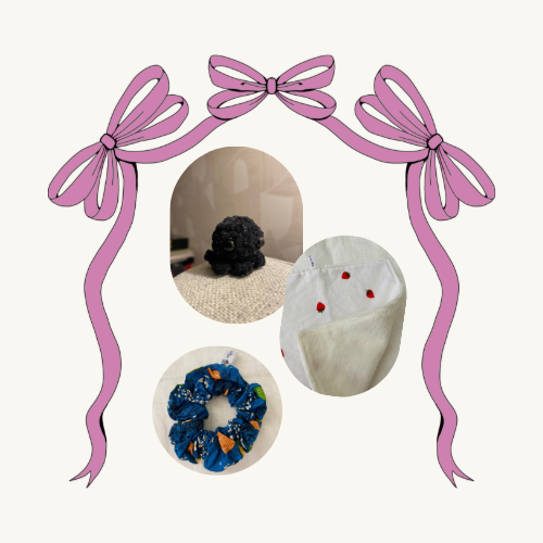 ✨ La création artisanale que tu as choisie en commandant cette fiche produit (ici des chouchous, des lingettes, des serviettes pour le visage ou encore des marque-page : 4 en tout ! et peut-être plus ...)